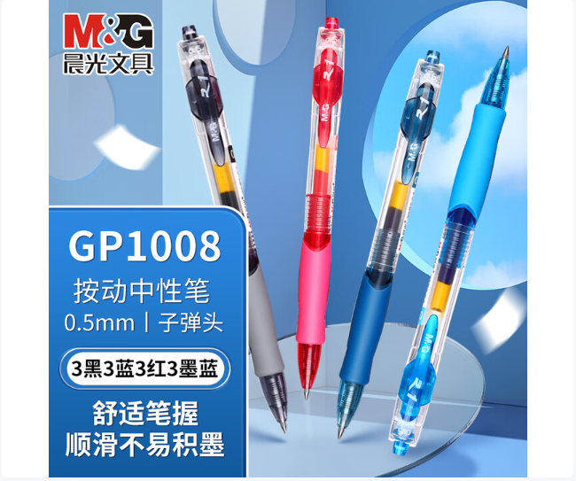 商品名称:晨光(M&G)中性笔创意者GP1008学生考试0.5子弹头水笔圆珠笔按压式签字笔商务办公经典【3黑3红3蓝3墨蓝】
