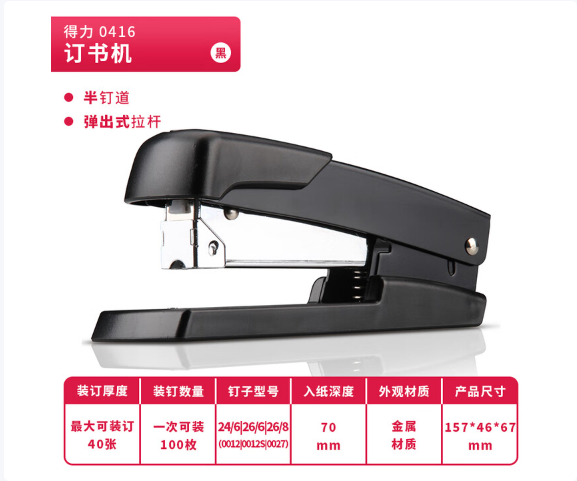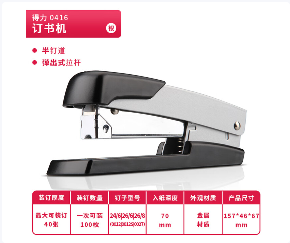 商品名称:得力(deli)50页金属厚层订书机/订书器 0416 单位/个