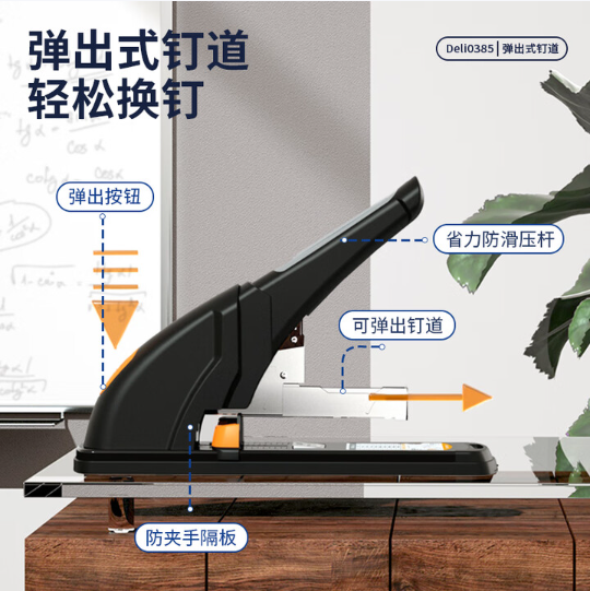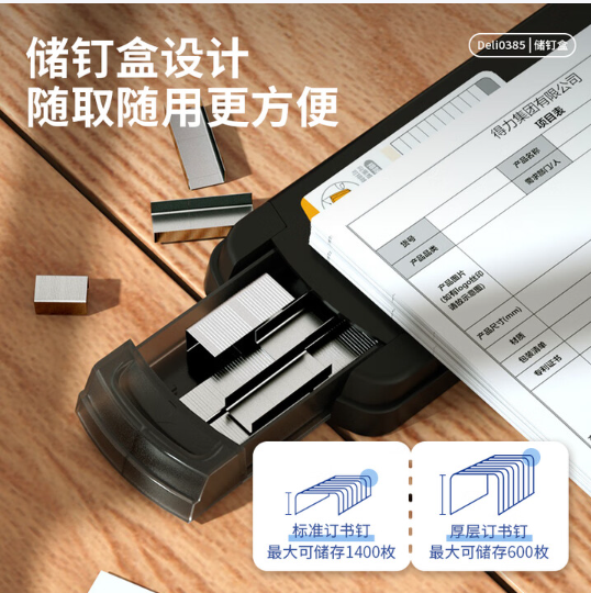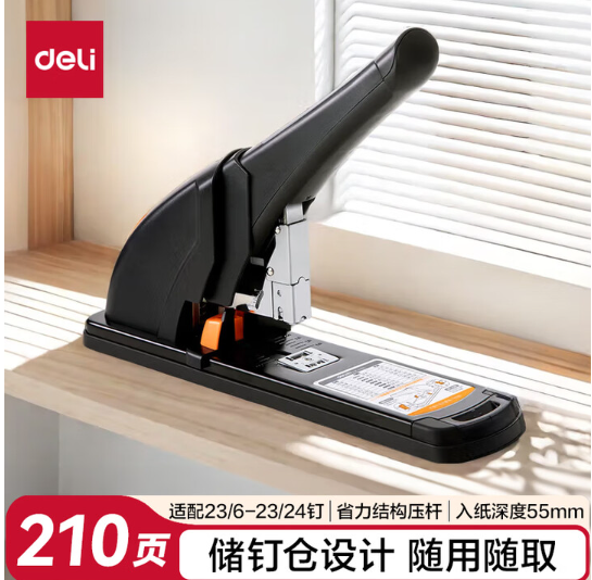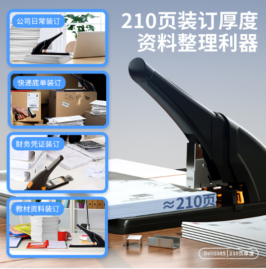 商品名称:得力(deli)210页省力重型大订书机/订书器 大号加厚重型订书机黑色0385 单位/个