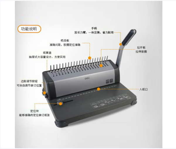 商品名称:得力(deli)3872 省力型胶圈/夹条装订机 21孔文件档案标书打孔机/打孔器 单位/台
