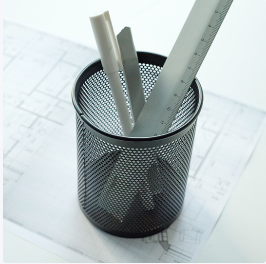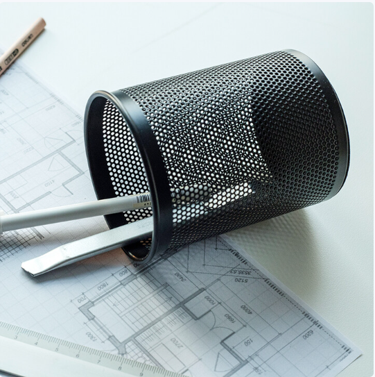 得力(deli)金属网状笔筒笔插圆形简约网纹收纳桶笔盒大容量多功能办公用品 圆款-加密金属网格 909 80*80*100 单位/个