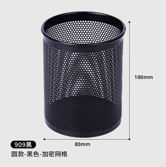 商品名称:得力(deli)金属网状笔筒笔插圆形简约网纹收纳桶笔盒大容量多功能办公用品 圆款-加密金属网格 909 80*80*100 单位/个