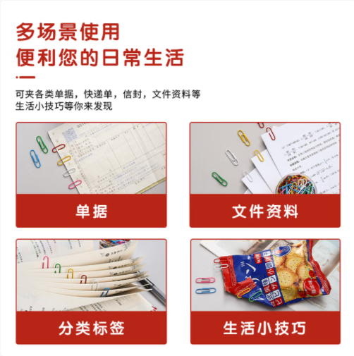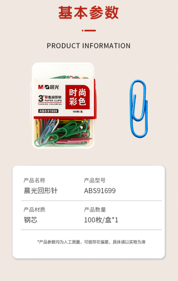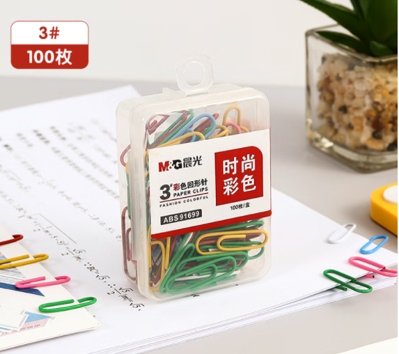 商品名称:晨光(M&G)3#彩色防锈回形针 办公用品家用多功能曲别针 ABS91699 100枚装 单位/盒