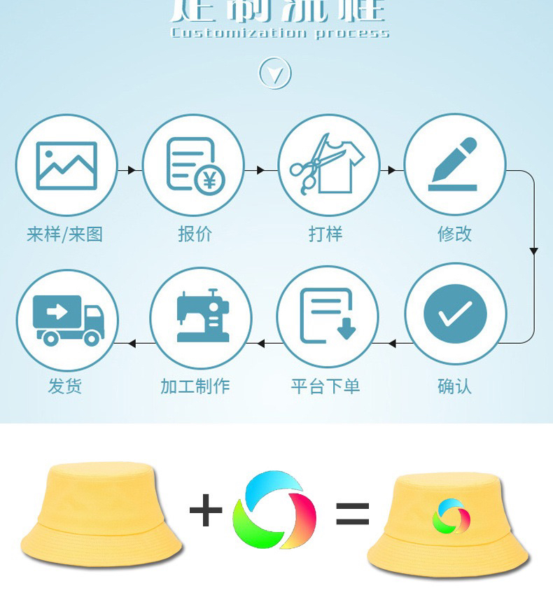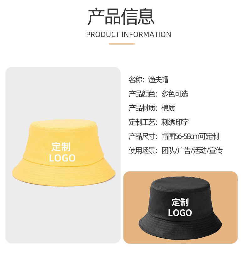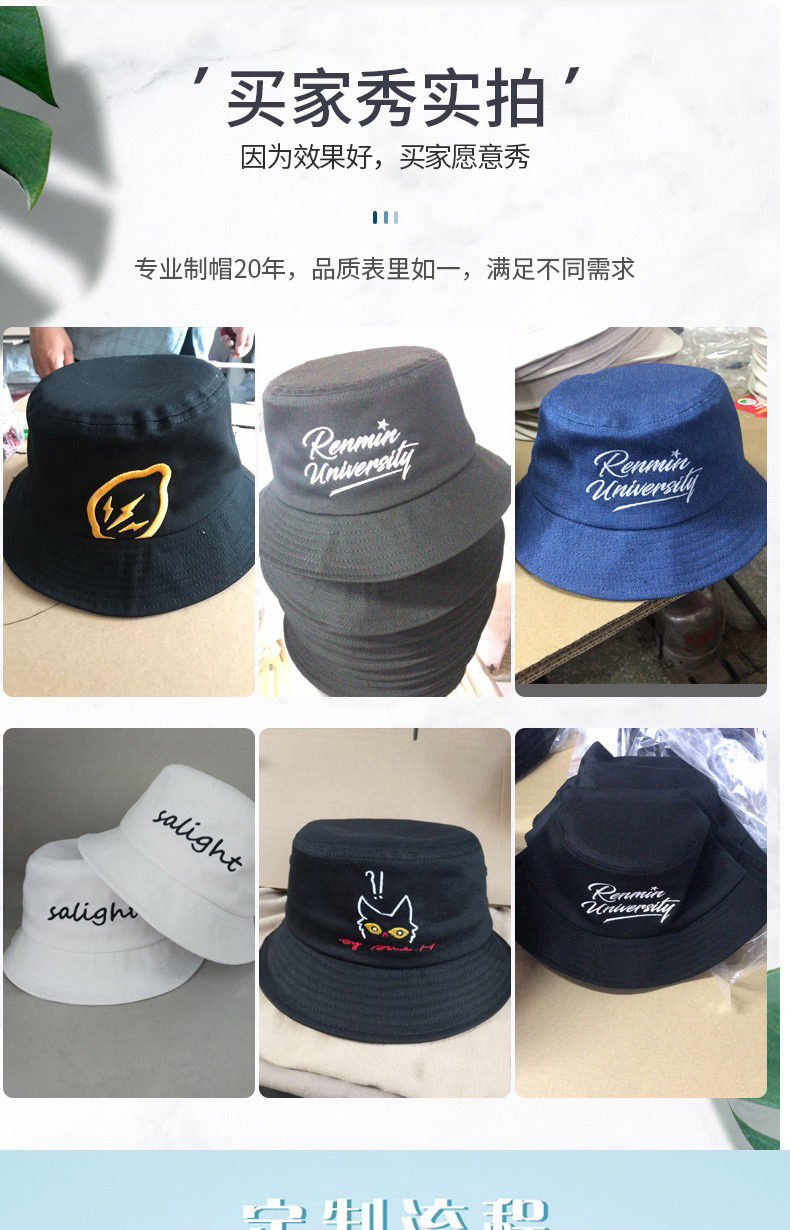 商品名称:渔夫帽定制刺绣印Logo男女纯棉儿童盆帽双面广告帽旅游防晒遮阳帽