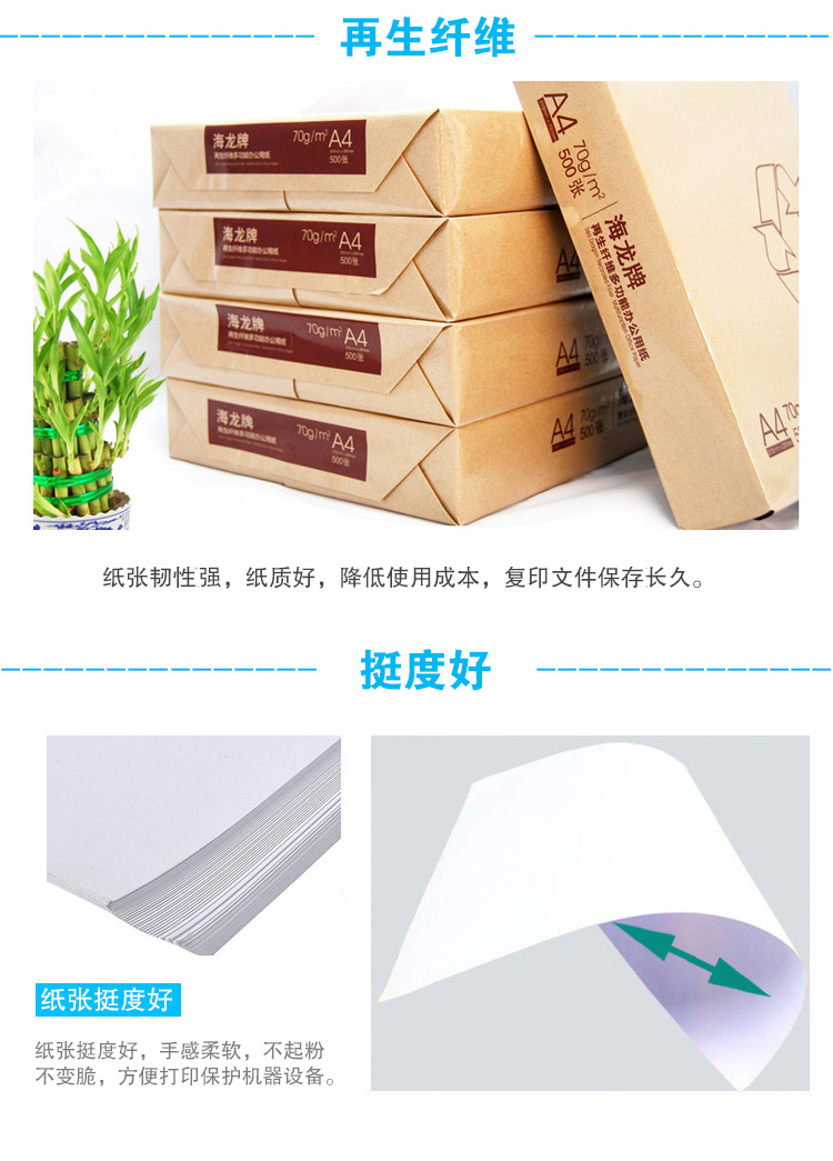 商品名称:海龙a4复印纸70克80g 500张/包 5包/箱 a4纸天章风打印白纸办公纸