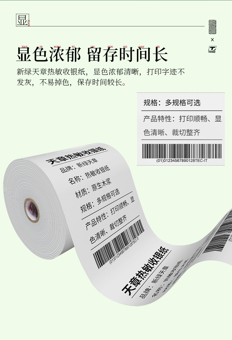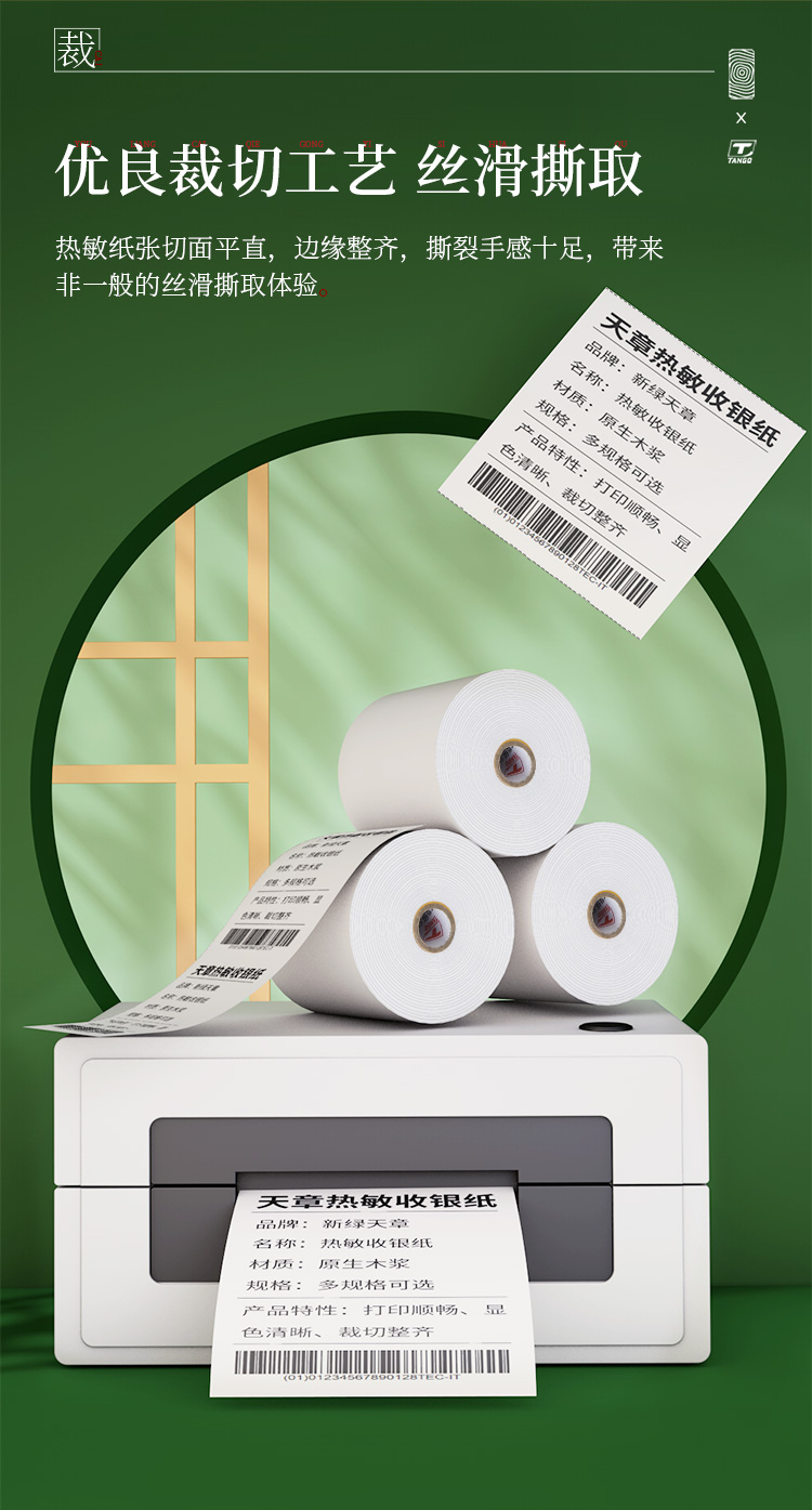 新绿天章收银纸80*80 57x50热敏纸80*60超市外卖厨房小票纸后厨纸
