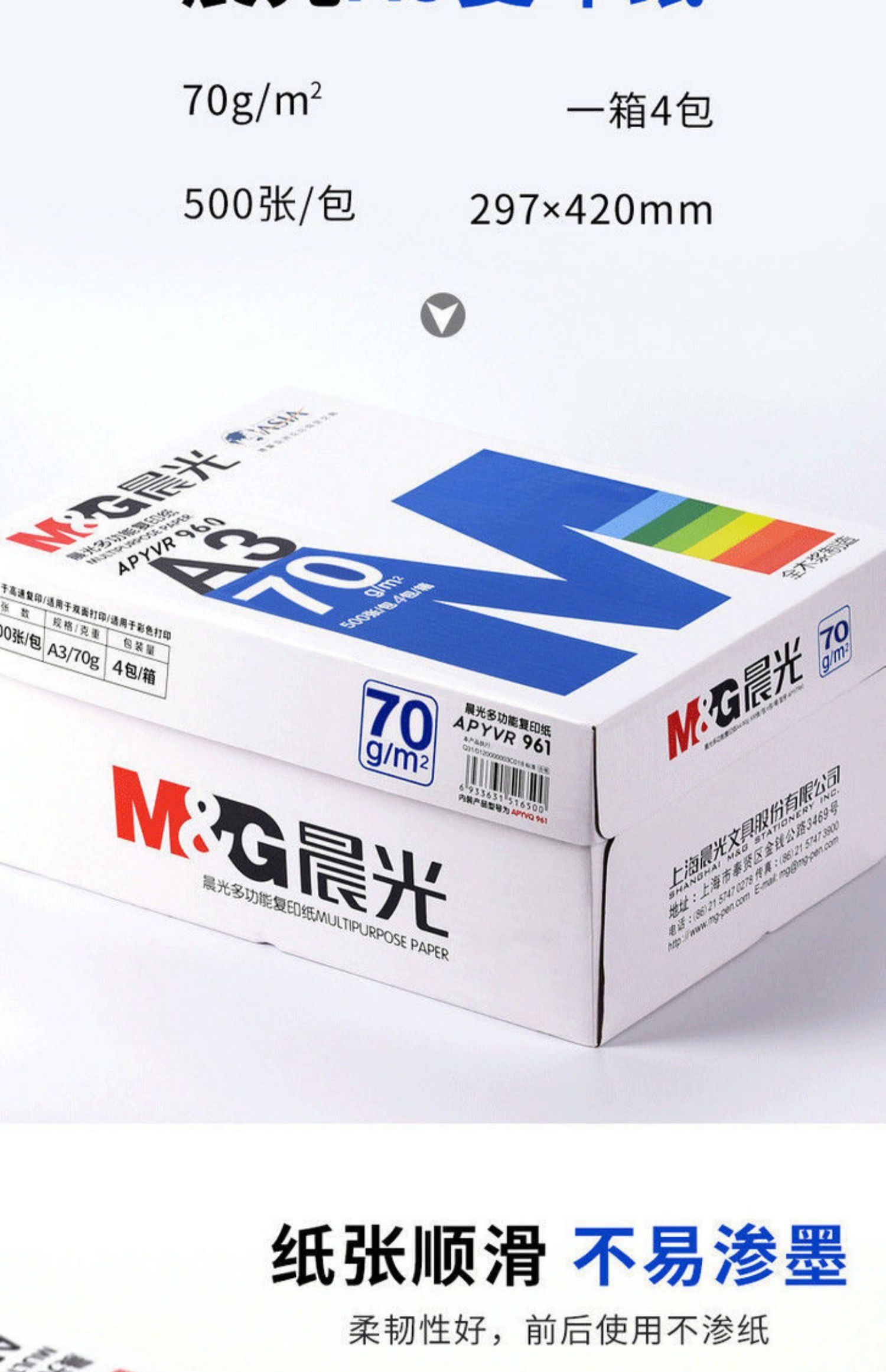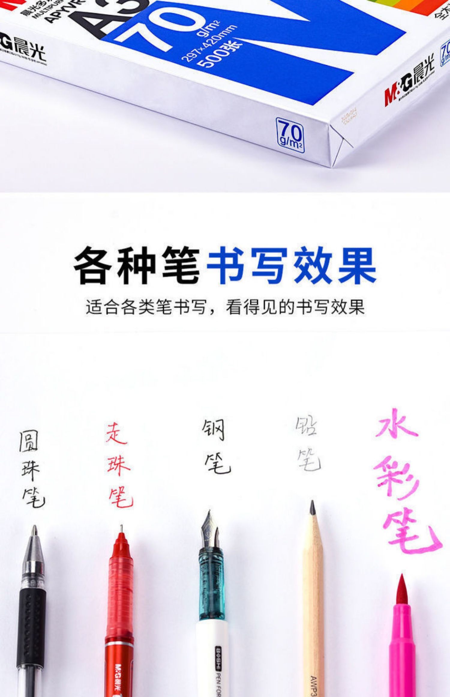 商品名称:晨光a4打印纸b5纸b4复印纸整箱2500张A3A5打印纸70g/80g16K草稿纸