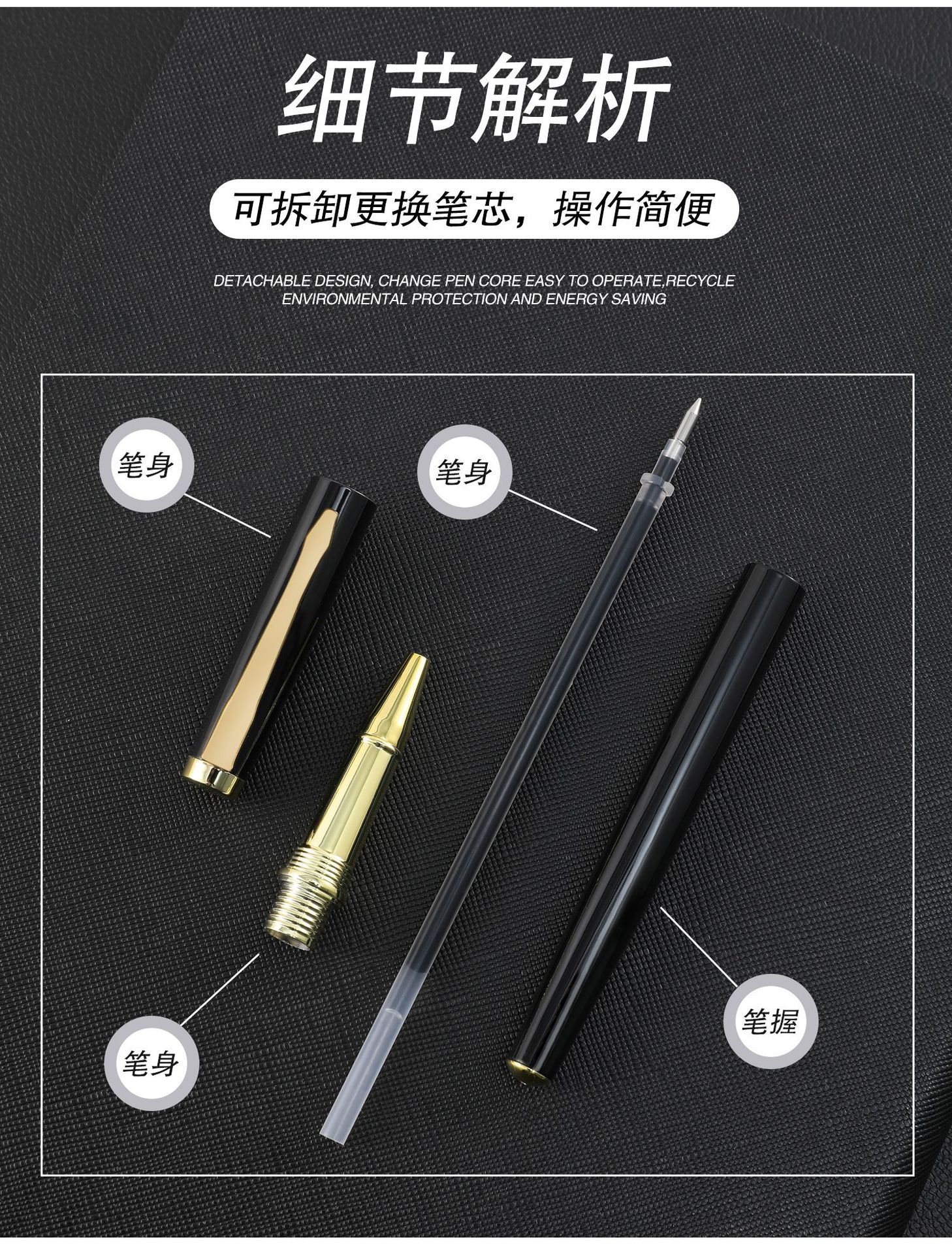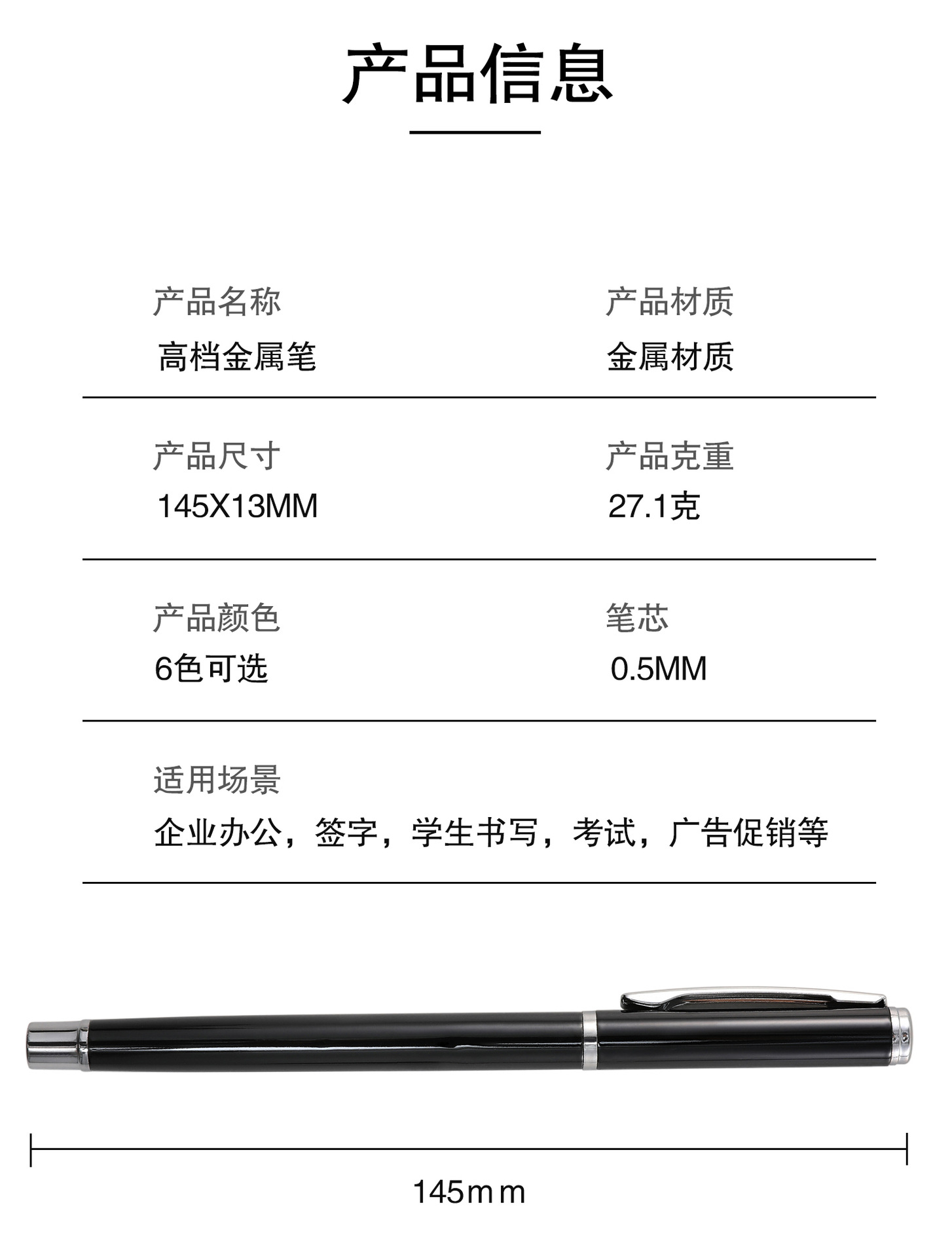 商品名称:黑色金属笔厂家刻字签字笔定logo制广告礼品中性笔企业展会印刷