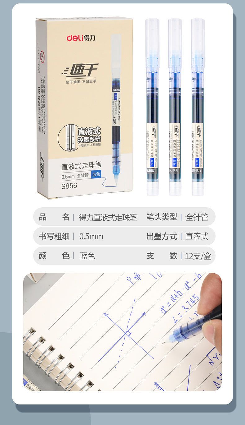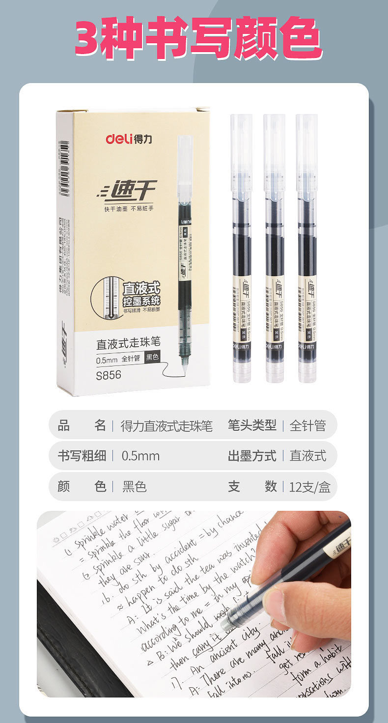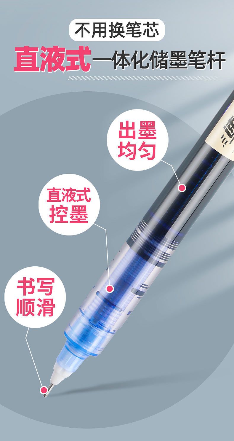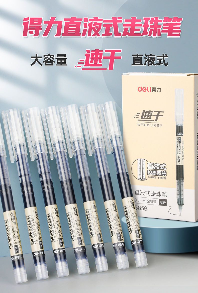 商品名称:批发价-得力大容量巨能写刷题笔速干直液式中性笔走珠笔0.5签字笔