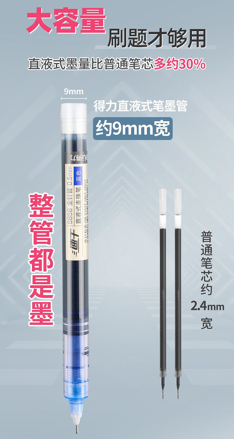 批发价-得力大容量巨能写刷题笔速干直液式中性笔走珠笔0.5签字笔