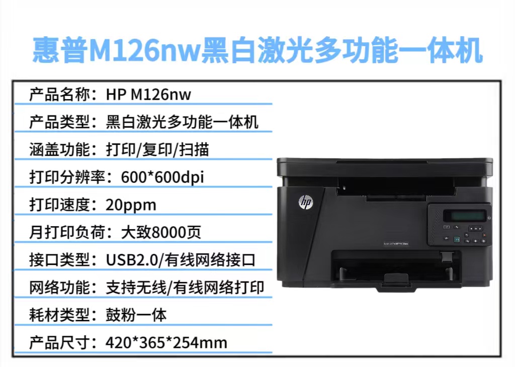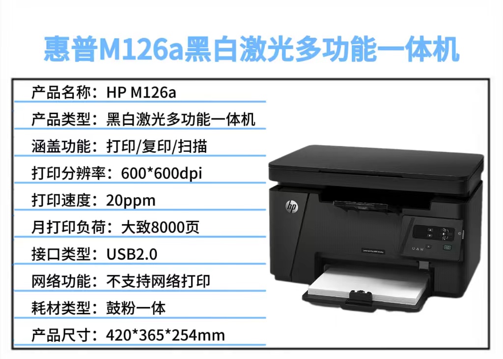 商品名称:二手惠普M126a黑白激光打印复印一体机扫描小型手机无线家用办公