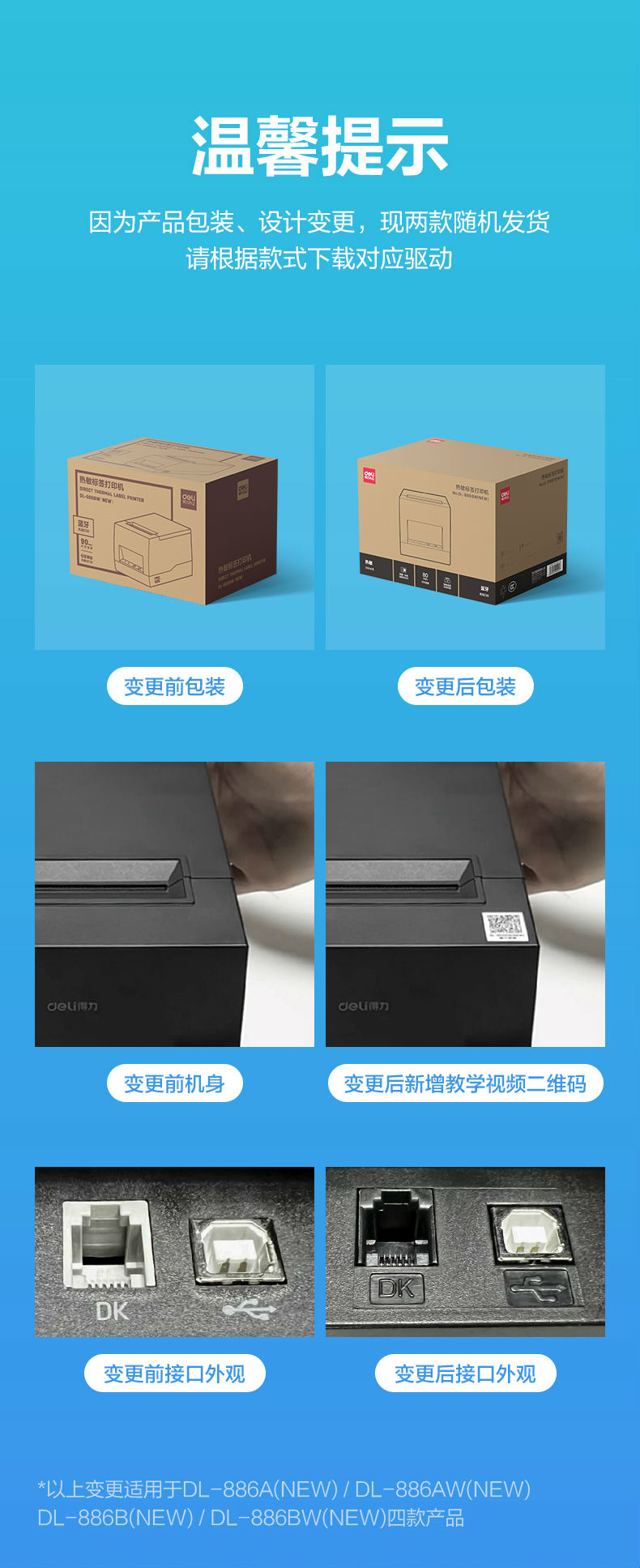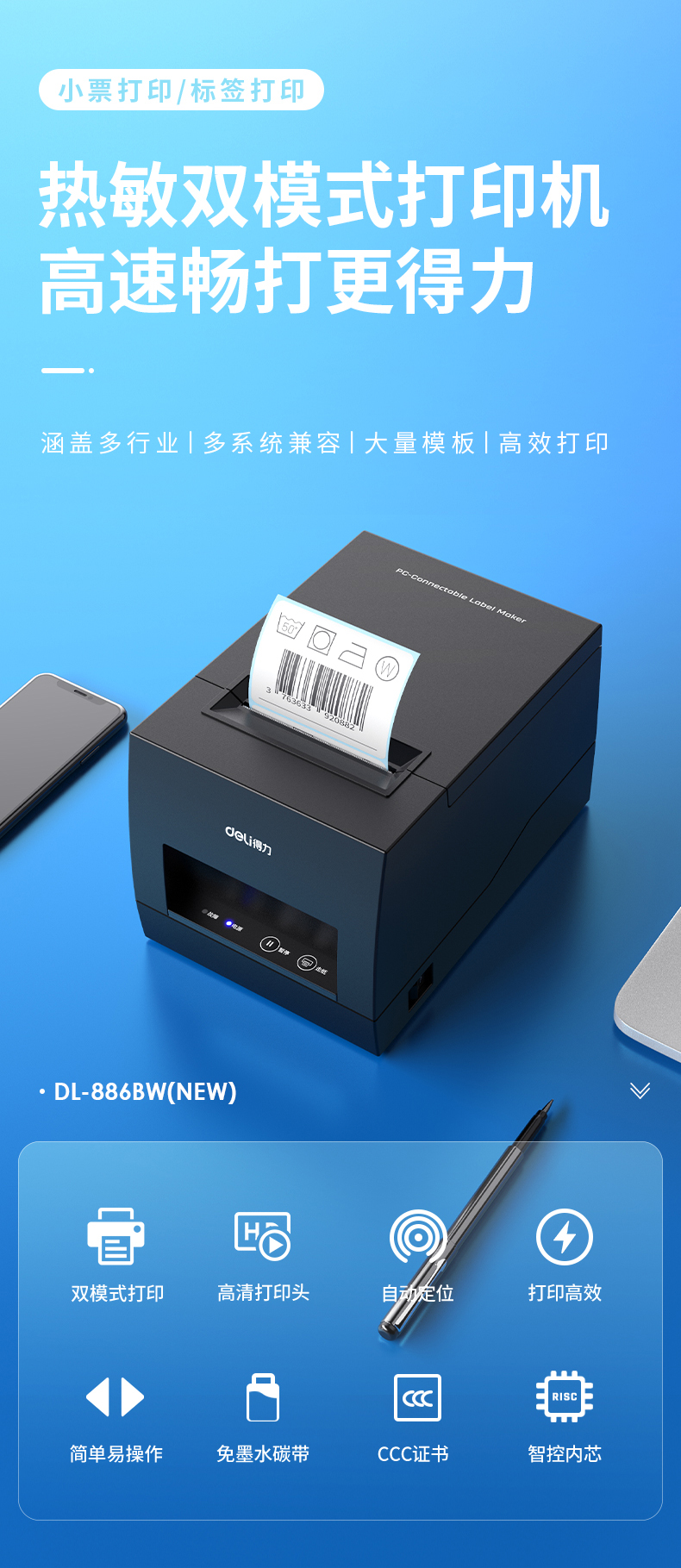 得力DL-886A 886B标签打印机手机蓝牙热敏不干胶贴纸886AW 886BW