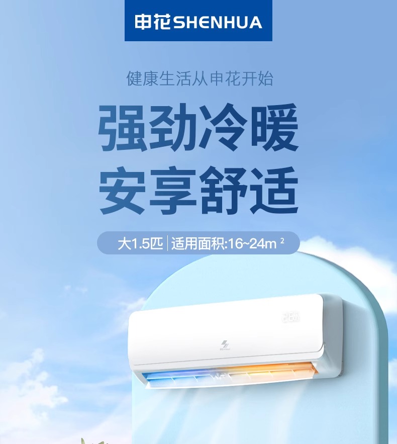 一级变频申花大1.5匹冷暖家用空调挂机2匹卧室3P壁挂式单冷出租屋