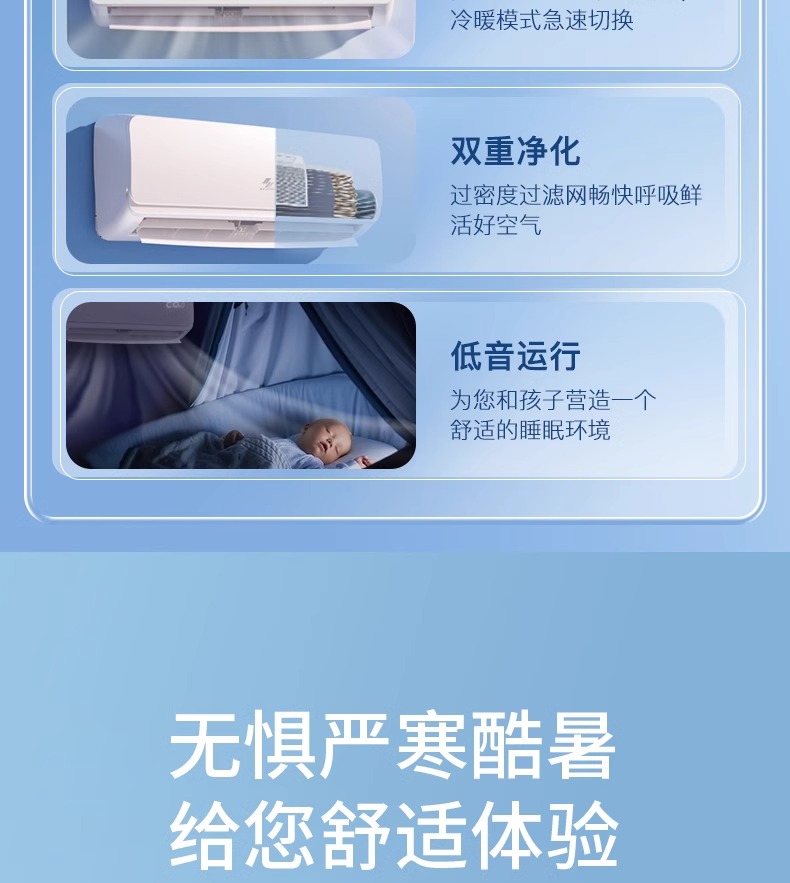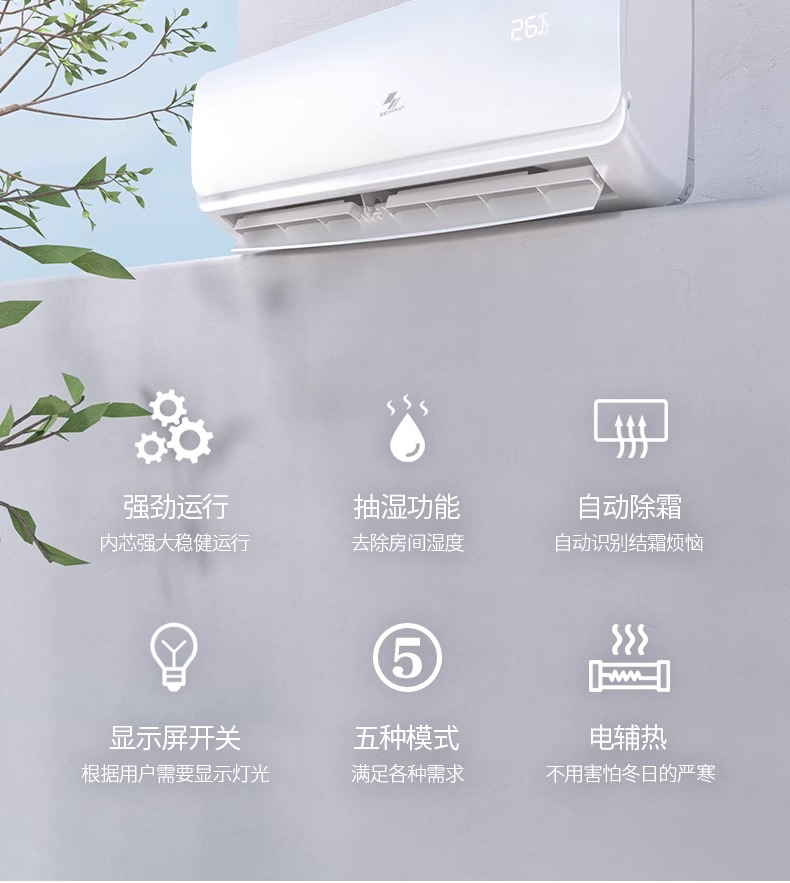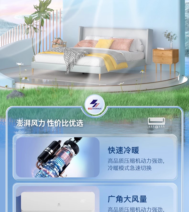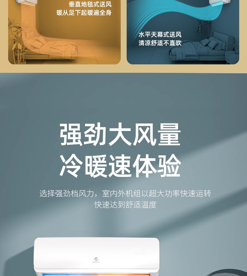 商品名称:一级变频申花大1.5匹冷暖家用空调挂机2匹卧室3P壁挂式单冷出租屋