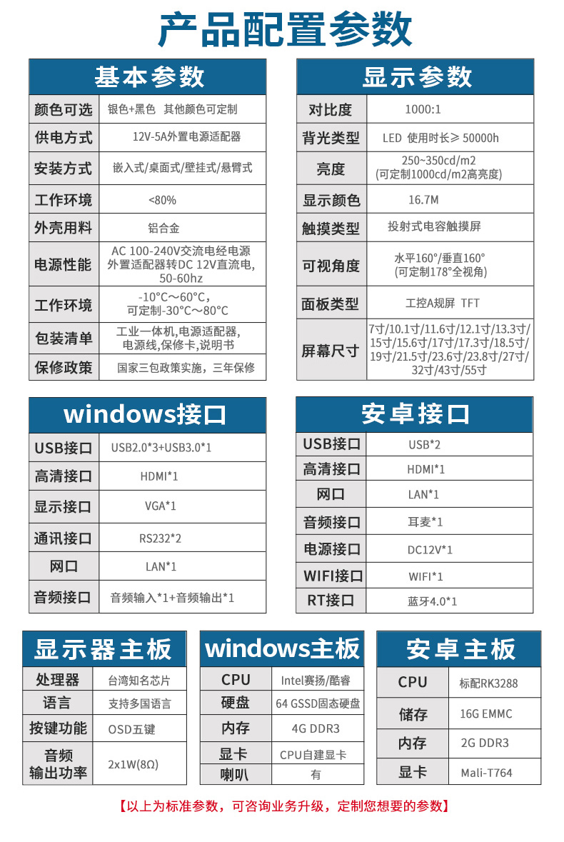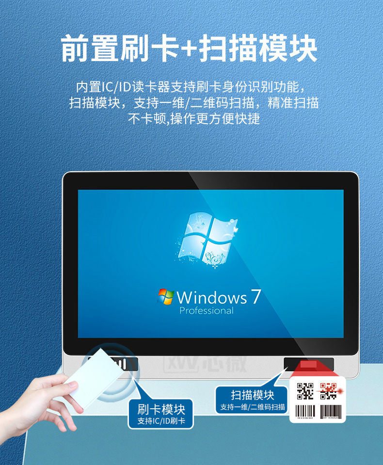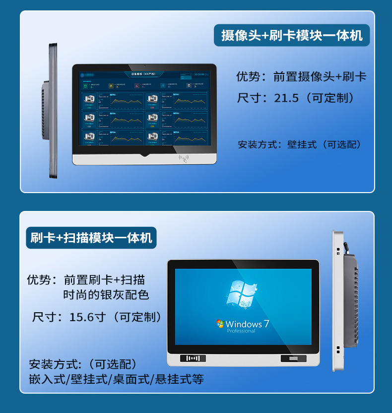商品名称:工控触摸屏IC/ID刷卡扫码人脸识别智能终端触控壁挂MES产线工位机