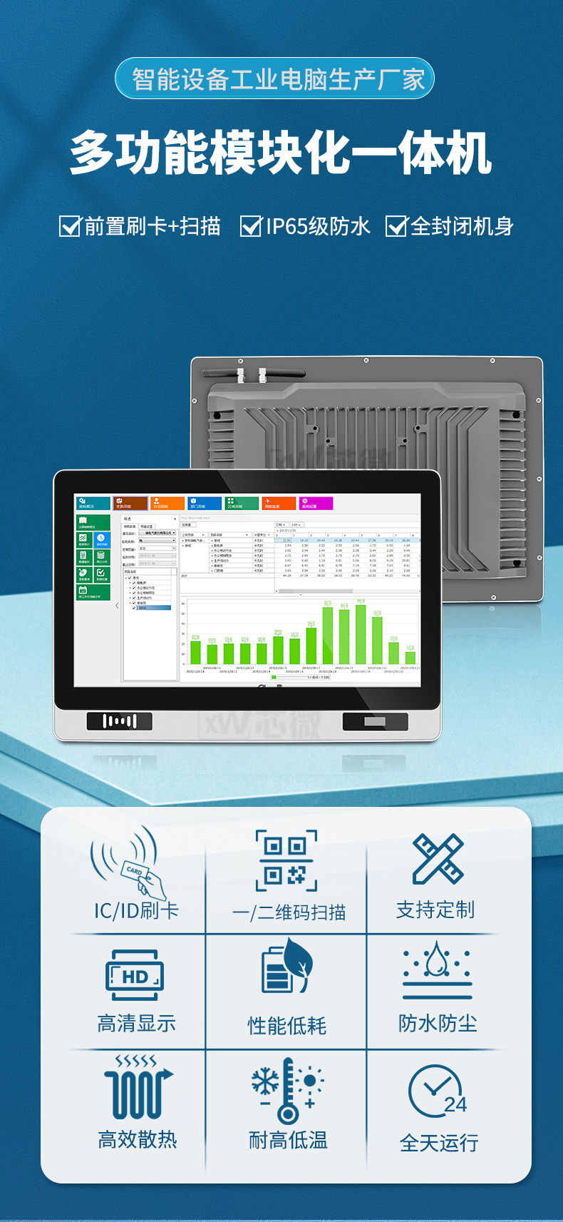 工控触摸屏IC/ID刷卡扫码人脸识别智能终端触控壁挂MES产线工位机