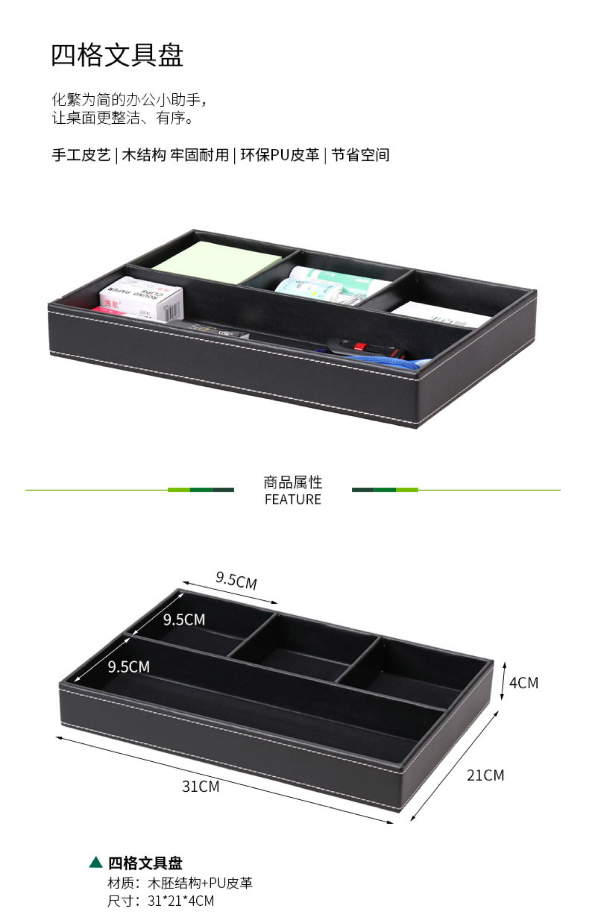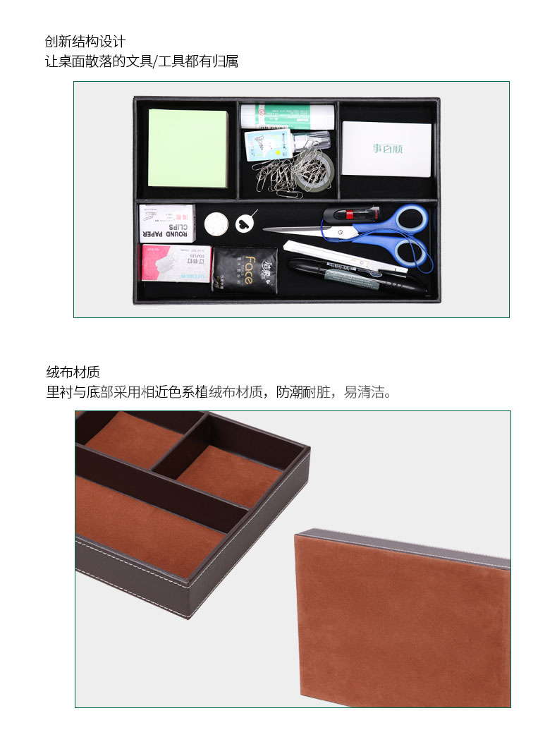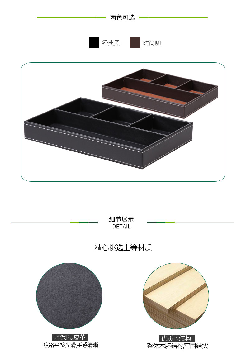 商品名称:时尚皮革办公文具收纳盒盘创意木质桌面收纳整理多格