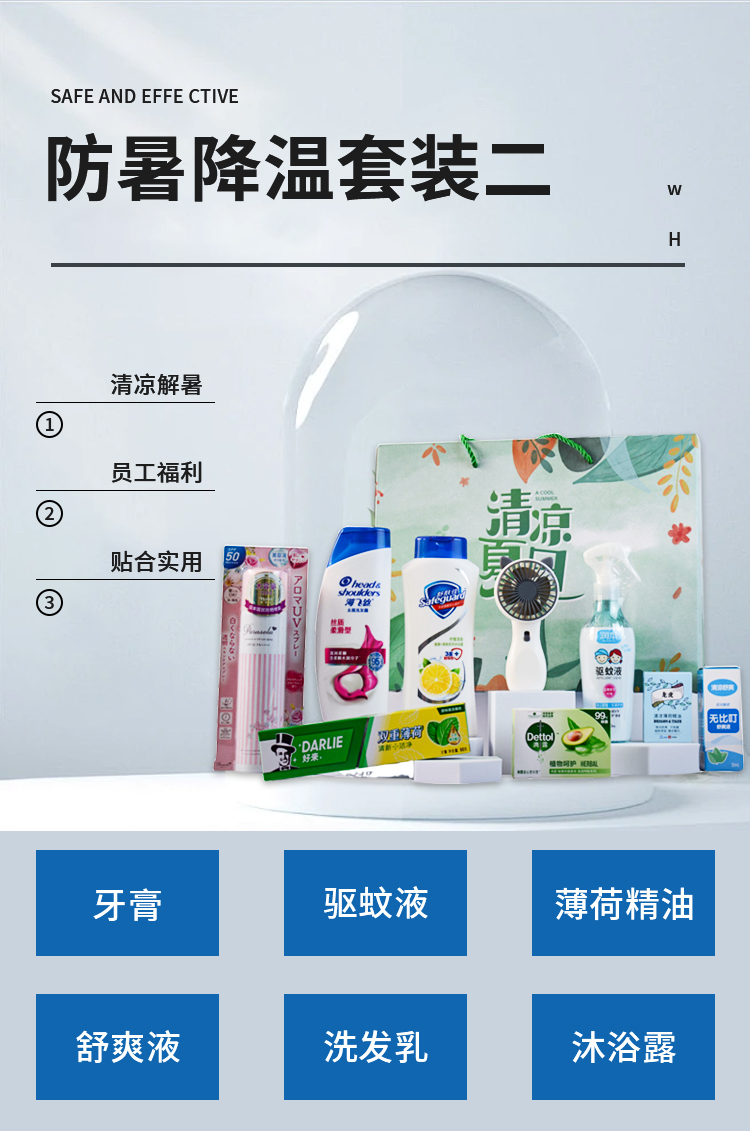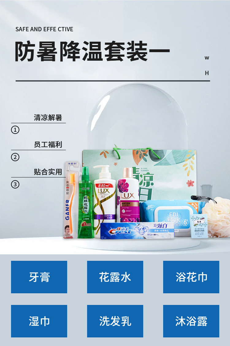 商品名称:端午发福利公司夏日送清凉工会高温慰问防暑降温洗护日用套装